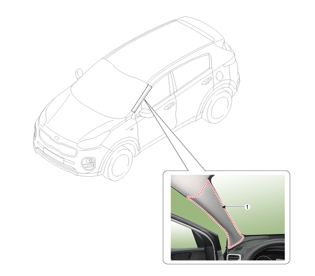Kia Sportage: Innenverkleidung / A-Säulenverkleidung Bauteile und bauteile-Übersicht