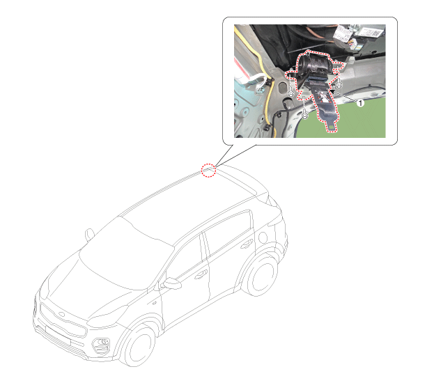 Kia Sportage: Rücksitzgurt / Aufroller mittlerer Sicherheitsgurt hinten Bauteile und bauteile-Übersicht