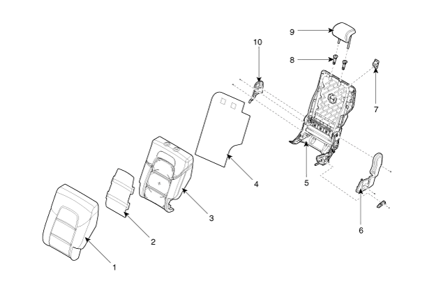 7. Rücksitzlehnen-Haltegurtbeschlagabdeckung 8. Rücksitzkopfstützenführung 9. Rücksitzkopfstütze 10. Innerer Rücksitzlehnenbezug |