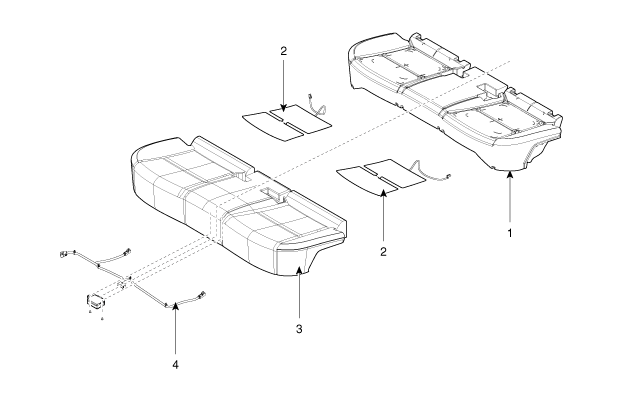 3. Rücksitzbezug 4. Verlängerungskabel Rücksitzheizung |