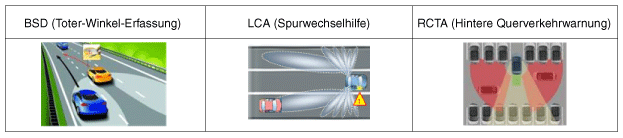 Toter-Winkel-Erkennung (BSD) : Erfasst andere Fahrzeuge im Bereich des