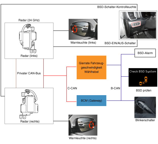 ③ BSD- und LCA-System fällt aus : Fehlercode wird gesendet