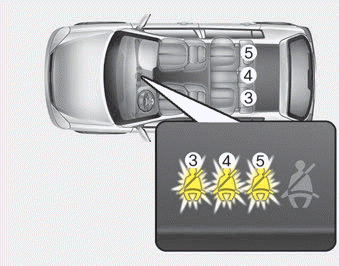 Wenn ein hinterer Sicherheitsgurt bei einer Geschwindigkeit von mehr als 20 km/h abgelegt wird, blinkt 35 Sekunden lang die entsprechende Gurtwarnleuchte, während gleichzeitig das Akustiksignal ertönt.
