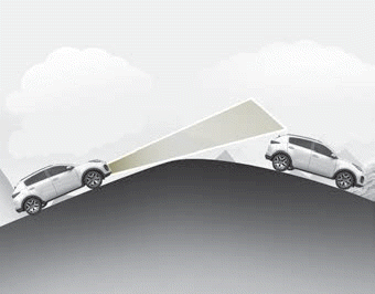 Wenn der FCA-Assistent das vorausfahrende Fahrzeug beim Passieren der Kuppe plötzlich erkennt, wird die Geschwindigkeit möglicherweise abrupt gedrosselt.