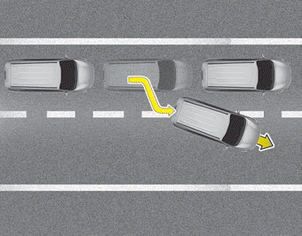 Wenn ein Fahrzeug vor Ihnen die Fahrspur wechselt, wird es möglicherweise nicht sofort vom FCA-Assistenten erkannt (vor allem wenn der Fahrspurwechsel abrupt erfolgt). In diesem Fall müssen Sie den vorgeschriebenen Sicherheitsabstand einhalten und gegebenenfalls das Bremspedal treten, um die Fahrgeschwindigkeit und den Sicherheitsabstand anzupassen.
