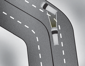 Auf kurvigen Straßen wird das andere Fahrzeug in derselben Fahrspur nicht erkannt, und die Funktion des FCAAssistenten wird möglicherweise beeinträchtigt. Dies kann dazu führen, dass es einen Fehlalarm und einen unnötigen Bremsvorgang gibt oder dass es keinen Alarm und keinen Bremsvorgang gibt, obwohl beides benötigt wird.