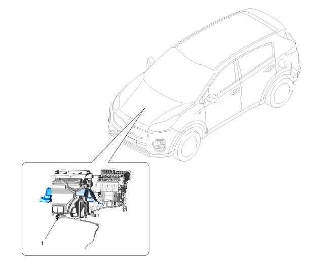| 1. Spritzwasserkanal [LH] 2. Modus-Stellantrieb 3. Temperatur-Stellantrieb (links) 4. PTC-Heizungseinheit 5. Wärmetauscherabdeckung 6. Wärmetauscher 7. Heizungskasten [links] 8. Konsolengehäuse 9. Geräuschdämmung 10. Temperaturklappe 11. Bodenklappeneinheit [LH] 12. Belüftungsklappe [LH] 13. Mittlere Kanaldichtung 14. Verdampferkern-Einheit |