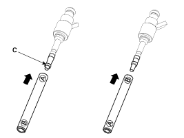 Dichtring-Einbauwerkzeug (B) (SST-Nr.: 09353-2B000) an der Injektorspitze