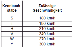 Reifenkennbuchstaben für die zulässige Höchstgeschwindigkeit