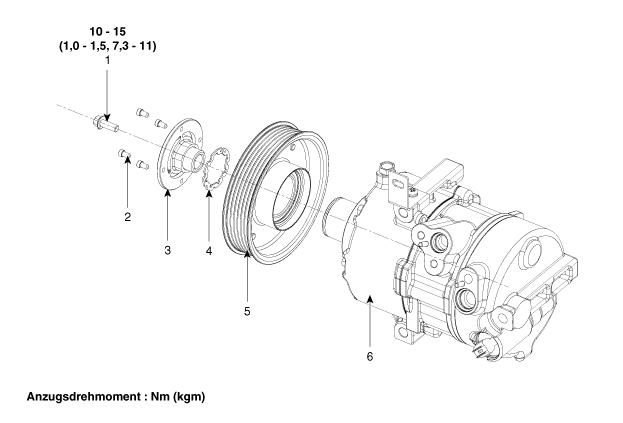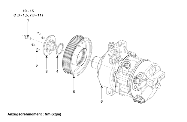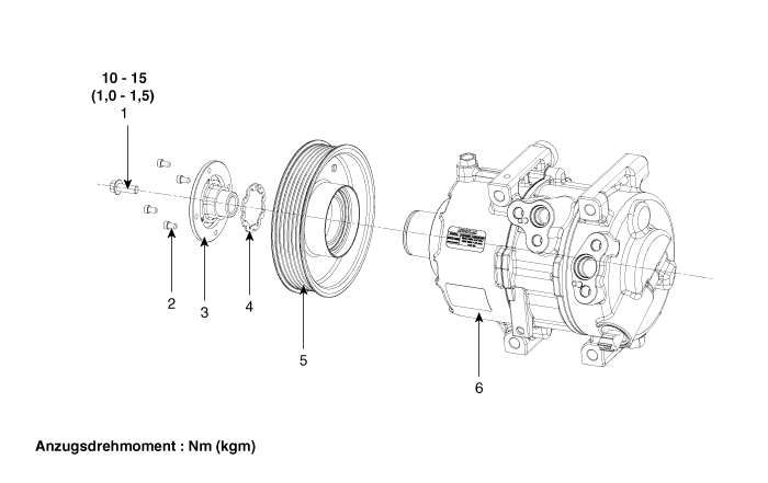 4. Sicherungsring 5. Riemenscheibe 6. Kompressoreinheit |