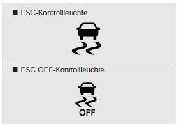 Die ESC-Leuchte blinkt jedes Mal, wenn die ESC-Regelung aktiv ist, oder sie leuchtet auf, wenn eine ESC-Störung vorliegt.