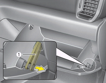 2. Ziehen Sie bei geöffnetem Handschuhfach das Halteband (1).