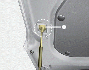 5.Stützen Sie die geöffnete Haube mit dem Haubenaufsteller (1).