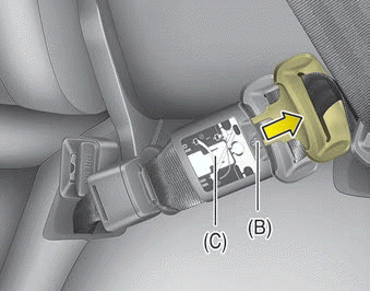 1. Ziehen Sie die Schließzunge (A) aus der Öffnung der Gurtblende.