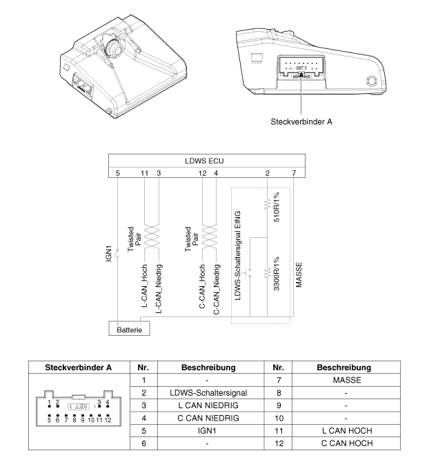 Kia Sportage: Spurhaltewarnsystem (LDWS) / Spurhaltewarnungseinheit (LDWS) Bauteile und bauteile-Übersicht