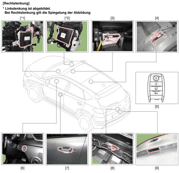 Kia Sportage: Wegfahrsperrensystem / Taste Motor-Startsystem Bauteile und bauteile-Übersicht