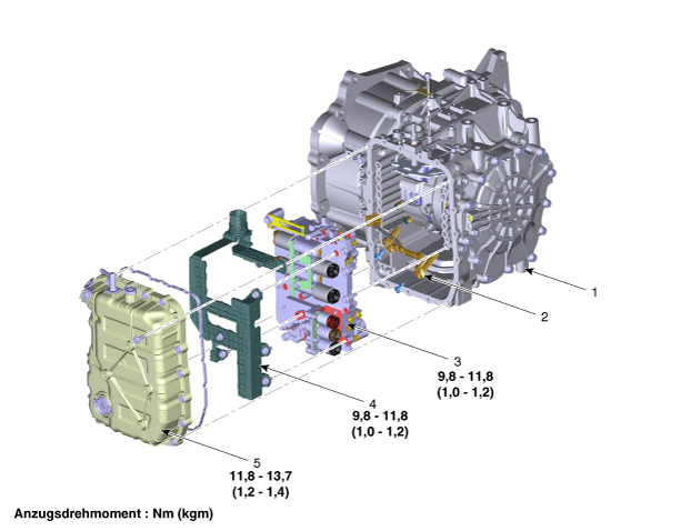 2. Eingangs-/Ausgangsdrehzahlsensor 3. Ventilgehäuse |