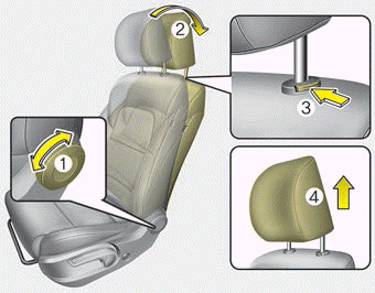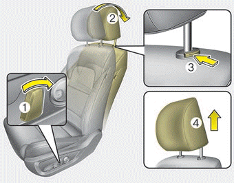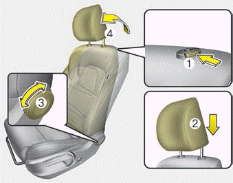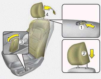 3. Halten Sie die Freigabetaste der Kopfstütze (3) gedrückt und ziehen Sie die Kopfstütze (4) hoch.