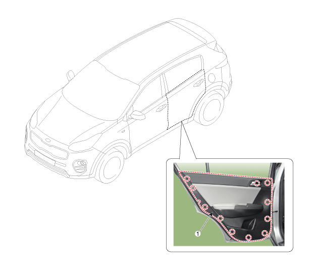 Kia Sportage: Hintertür / Vordertürverkleidung Bauteile und bauteile-Übersicht