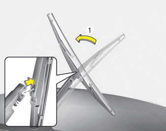 3. Drücken Sie die Klammer (1) und drücken Sie den Wischerarm (2) nach oben.