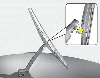 1. Heben Sie den Wischerarm an und drehen Sie das Wischerblatt, um an die Kunststoffklammer zu gelangen.