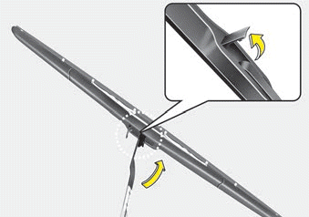 2. Drehen Sie die Wischerblattklammer und heben Sie sie dann an.